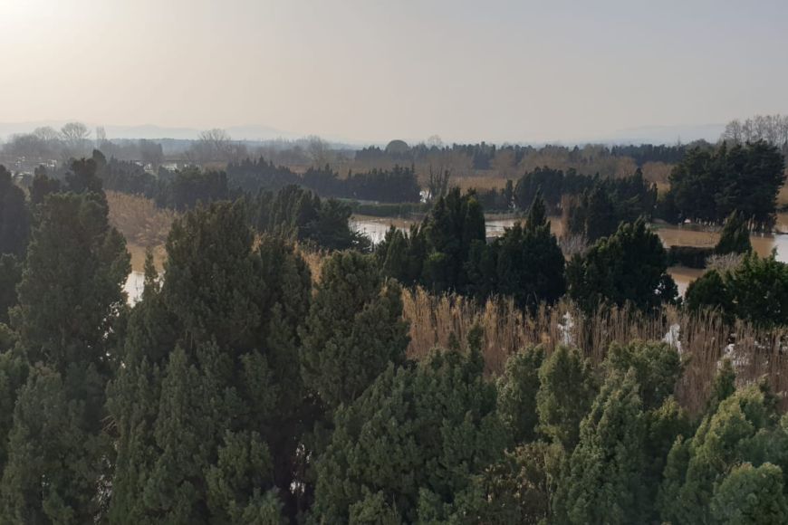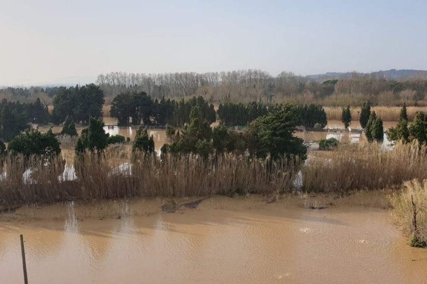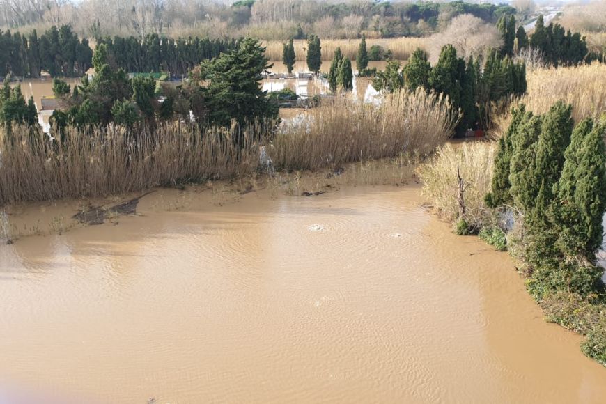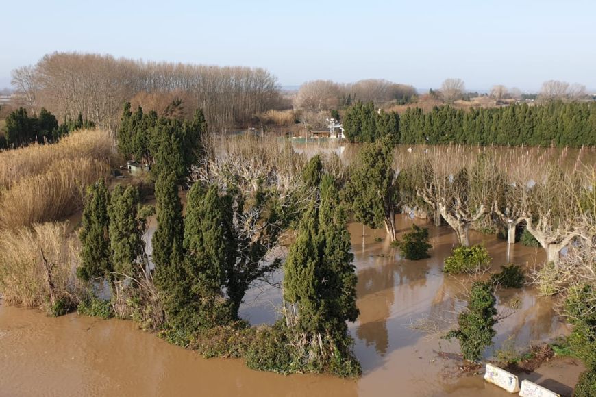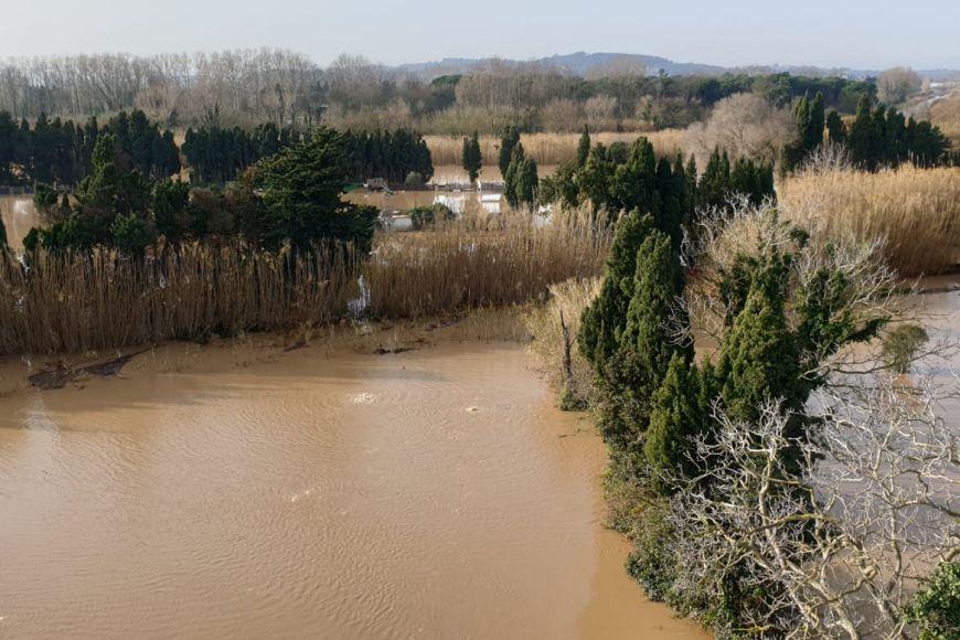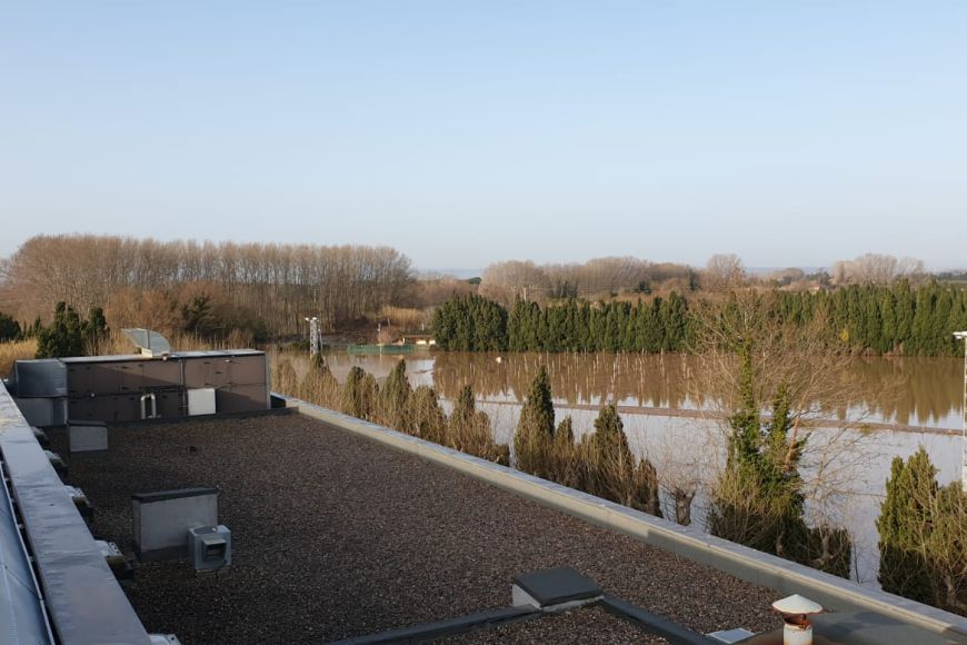 Arran del temporal Glòria, la crescuda del riu Ter ha inundat part dels terrenys entorn de l'Auditori i l’aparcament de terra, però no ha afectat l'equipament